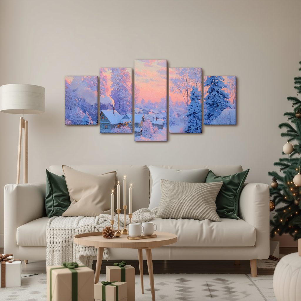 OBRAZ KOUZELNÁ ZIMNÍ VESNICE - BAREVNÉ DOMY - PICTURES