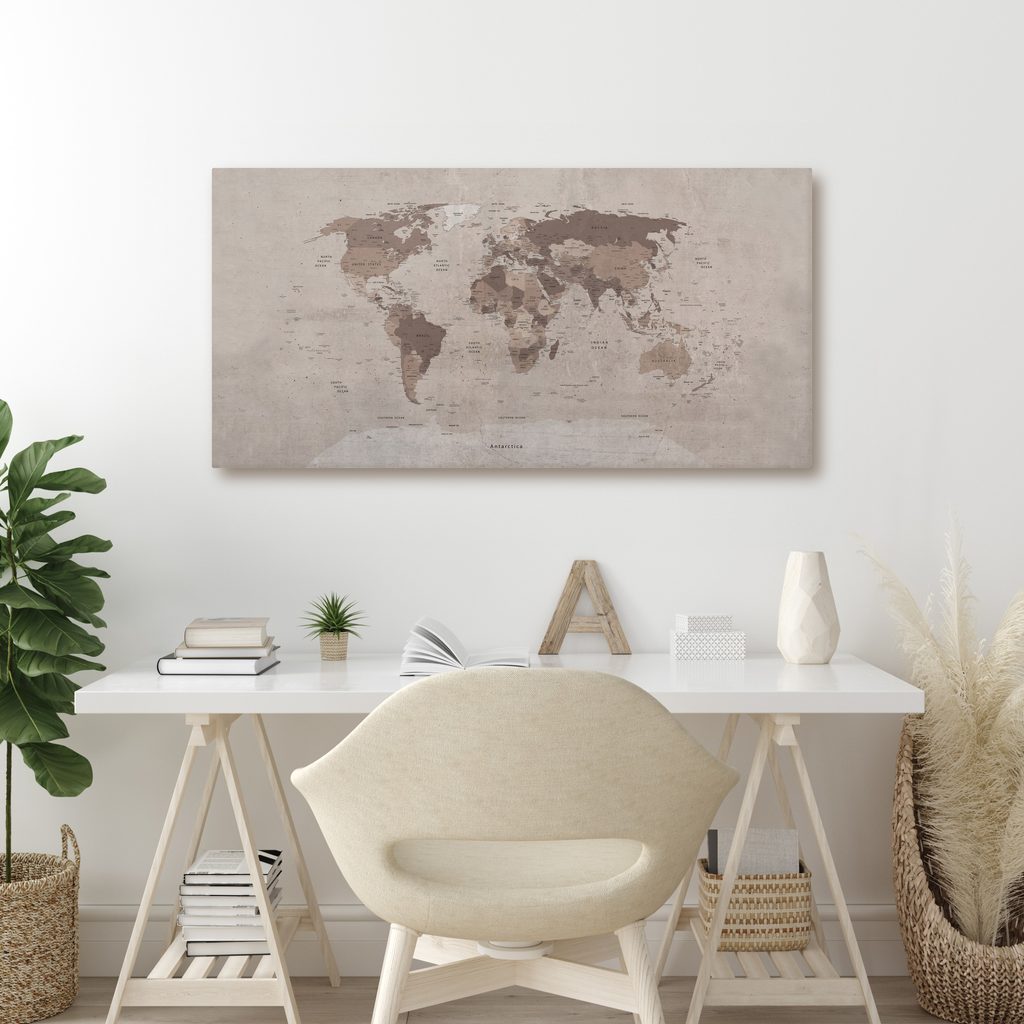 The pictures are printed on high-quality elastic canvas with a weight of 370 g / m2, the canvas is made of a mixture of cotton and polyester. The quality of the images lies not only in the material itself but also in the technology used. Images are printed slowly in high quality, printing guarantees color saturation (12-16 pass, ink density 200), so you do not have to worry about indistinct images. When printing, we use high-quality, environmentally friendly, odorless inks that do not release harmful substances into the air so you can place pictures in any room. The printed canvas is then attached to a 3 mm thick corkboard. Attach pushpins to the picture on the cork and a special interior accessory is born.