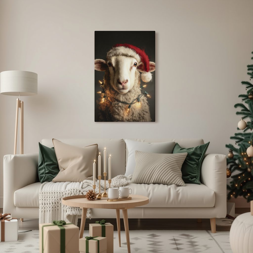 Obraz ovce s vánoční čepicí