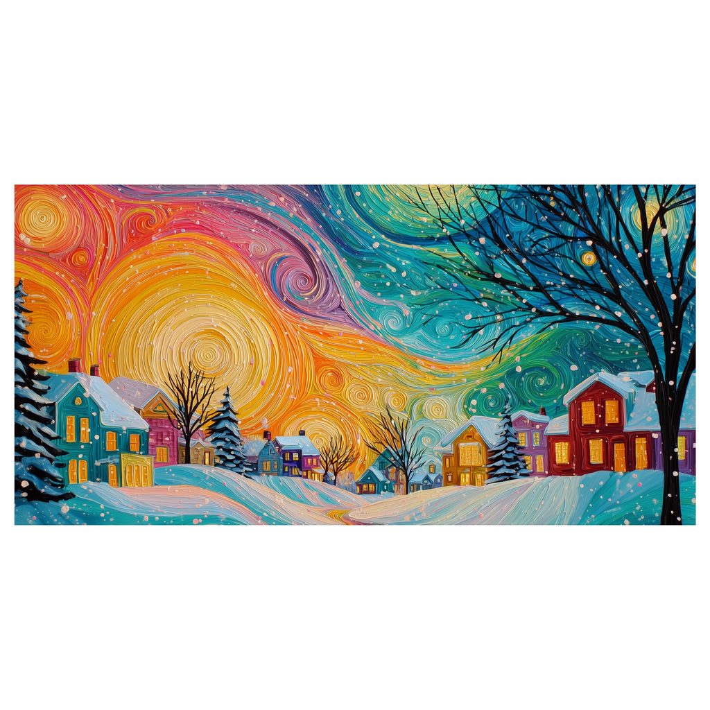 Vánoční obraz kouzelná noc barevné domy